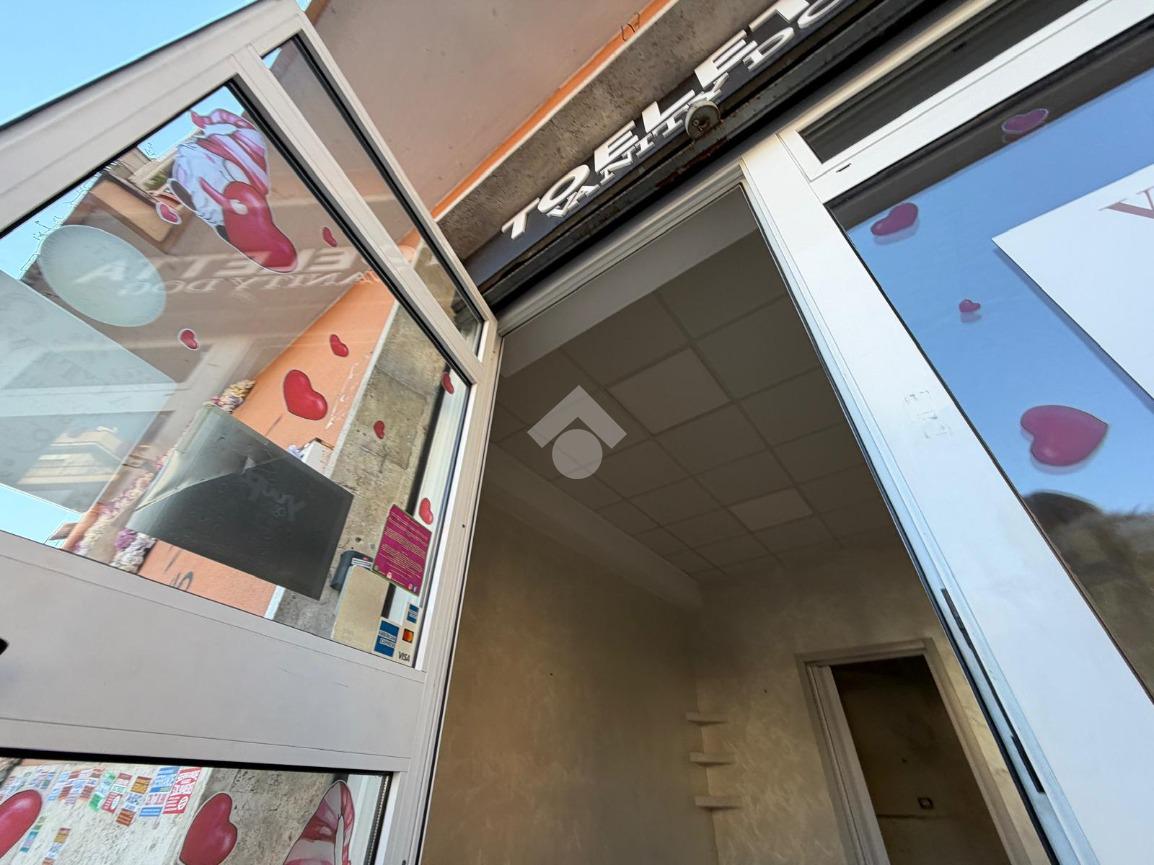 Ingresso: Vetrina su strada che conduce all'interno tramite un unico gradino, dispone di un servizio finestrato e di un secondo piccolo ambiente riservato, utile come retro-negozio o magazzino.